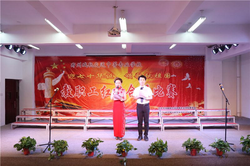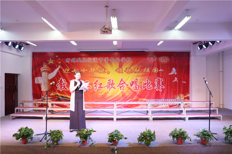 比赛现场其乐融融。在副校长、工会主席张爱云的精彩致辞中教职工红歌合唱比赛正式拉开了帷幕。张主席强调,在新中国成立70周年之际,我们举办这样一场红歌合唱比赛,是一件很有意义的事情。此次比赛,同志们克服各种困难,精心组织,加班加点,认真排练,付出的辛勤劳动使人深受教育、深受鼓舞。今天,全校教职工共唱红歌,重温经典,追忆峥嵘岁月。这既是一场全校党员、教职工展现才华的音乐盛宴,更是大城轨为喜迎十一、庆贺新中国成立70周年华诞的献礼。希望通过本次比赛,能够进一步增强全校师生的凝聚力和荣誉感,充分展现广大教职工积极向上、朝气蓬勃的精神面貌,激发广大师生的爱国、爱党、爱社会主义的真挚情感,掀起我校“不忘初心、牢记使命”主题教育活动的又一次高潮。