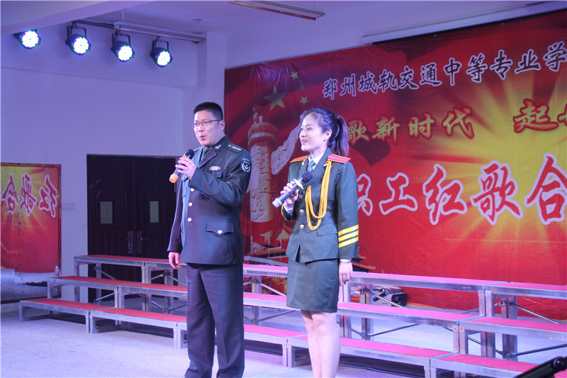 运管二系主任苏谊、轨道机电系学管副主任张伟学合唱《祖国你好》