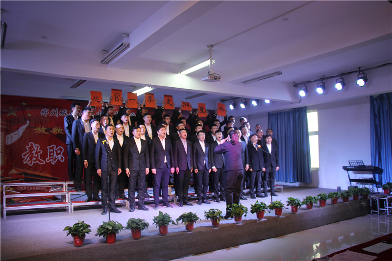 为大力弘扬十九大精神,积极传播新时代正能量,展现我校教职工对党忠诚、信念坚定、奋发进取的时代精神。2018年12月5日下午,由我校党委、工会主办的 “放歌新时代,起航新征程”教职工红歌合唱比赛在艺术楼303教室精彩开唱。我校党委书记尚亚民,副校长王海明,党委副书记、副校长陈景国,副校长崔小岭,工会主席、副校长张爱云,党委纪检书记、副校长侯河新,财务总监马海斌,各处(室)、各系(部)中层以上领导和500余名教职工代表共同观看了比赛。