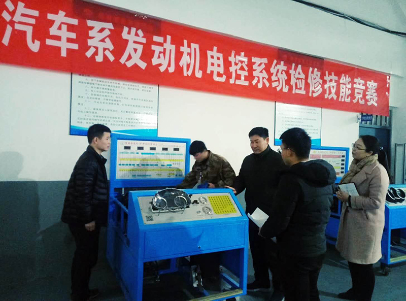 图:禹建军副校长观看汽车系-发动机电控系统检修技能竞赛