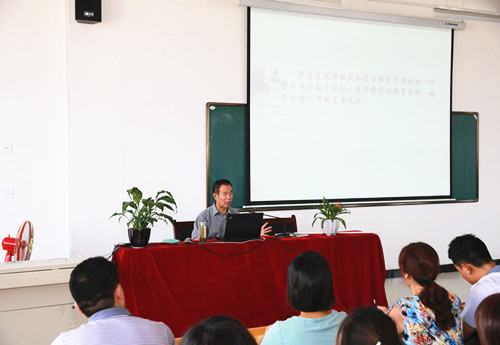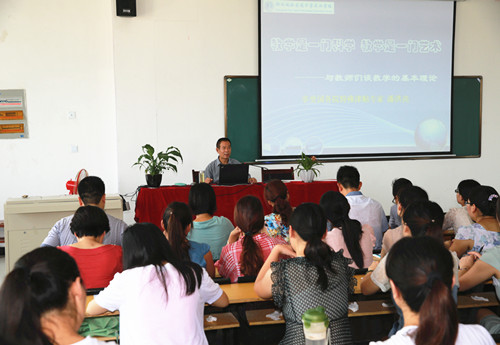 为了进一步提高教师教学理论水平,改善课堂教学质量,2013年8月14日上午,潘洪亮院长在A2合堂教室为全体教师做了关于教育教学基础理论的培训,培训由副院长李良玉主持。