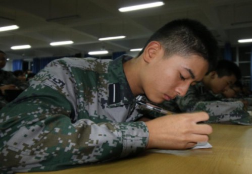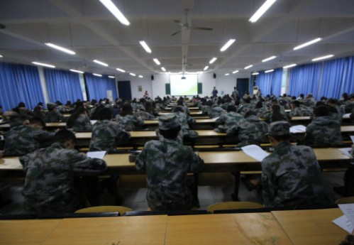 应用文写作海选现场中,认真答题的同学们