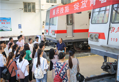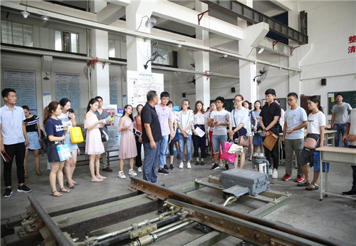 图:参观轨道交通专业实训中心