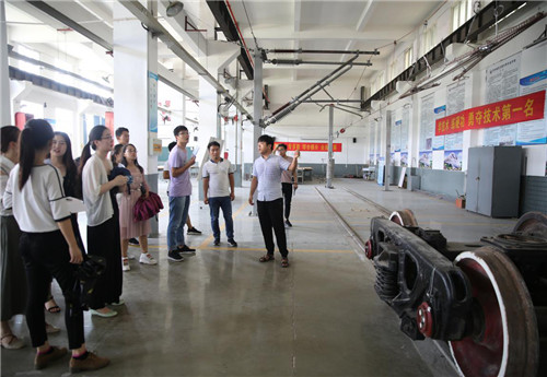 图:参观轨道车辆检修实训室