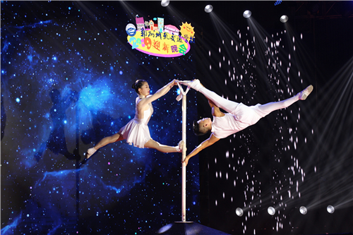 天翔杂技团杂技表演《太空漫步》轻重并举,通灵入化,软硬功夫相辅相成,展示了一个集惊险性、艺术性、观赏性于一体的极富感染力的杂技精品,在力量中创造出身体平衡极限之美。所完成的高难度动作,也赢得了台下观众的热烈掌声。