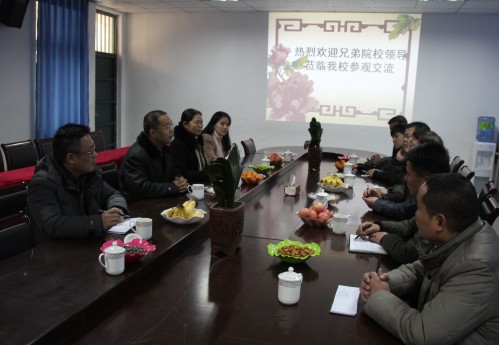 2014年12月26日下午,焦作市职业技术学校领导一行6人来我校交流工作。副校长陈景国、张爱云,办公室主任李保龙,副主任梁亚磊等同志热情接待了兄弟学校来访领导。