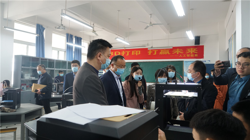 调研组一行先后来到我校无人机实训室、3D打印实训室、城轨学院站、轨道信号实训车间和轨道交通专业实训中心走访调研。