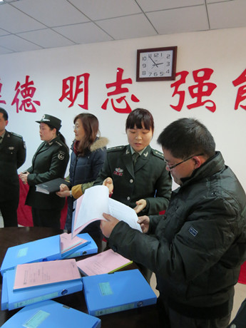 汇报结束后,检查组查阅了学校迎评的专题材料。