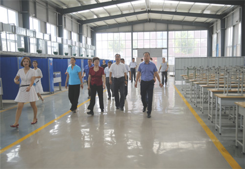 董事长于存涛、副校长兼工会主席张爱云陪同各位领导视察我校焊接实训车间