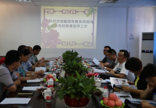 2015年9月1日上午,新郑市教体局检查组一行6人莅临我校检查指导秋季开学工作。校长潘洪亮,副校长兼工会主席张爱云,副校长崔小岭、副校长李良玉及各处室负责人在行政楼一楼会议室接待了检查组领导。