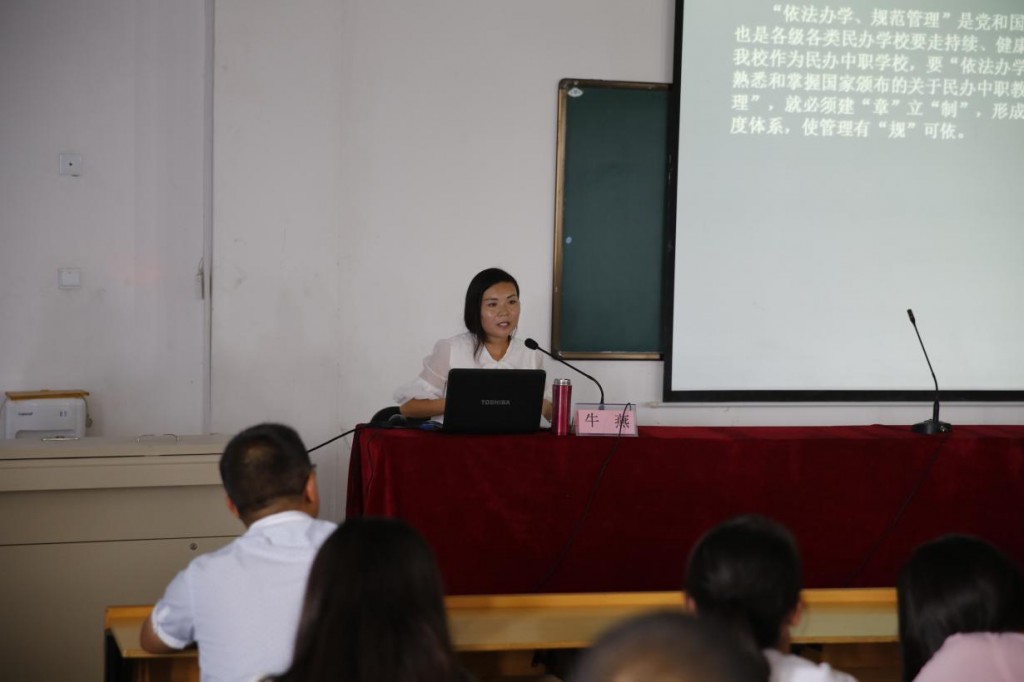 图 人事处处长牛燕为新教职工讲解校园规章制度