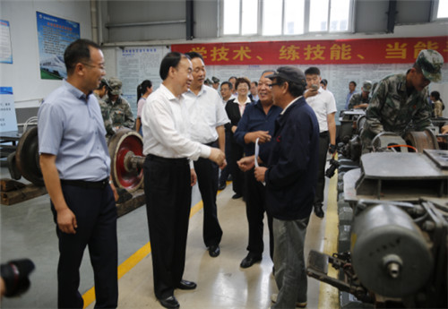 理事长于存涛陪同徐济超副省长、黄布毅副秘书长、朱清孟厅长一行视察我校轨道交通车辆检修实训室