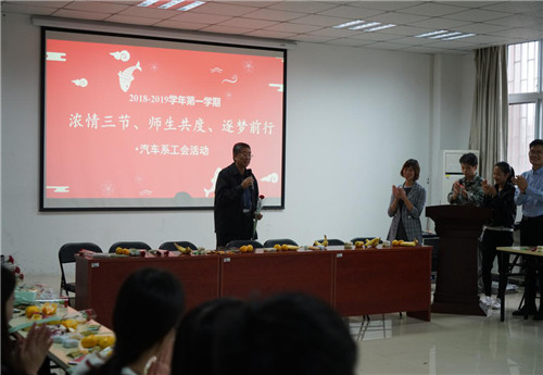 行政二工会小组、运管二系工会小组、运乘系工会小组、轨道机电系工会小组、汽车系工会小组、人工智能系工会小组、基础教学部工会小组举办的“浓情三节 情系城轨”活动,节目精彩纷呈。有歌曲、舞蹈和书法表演等,节目中穿插了趣味游戏、抽奖活动。活动中,老师们参与积极性高,表演精彩绝伦。另外,各工会小组还为本次活动准备了美味的月饼和零食,老师们在欢乐之余还能尽享美食,各工会小组活动现场其乐融融。