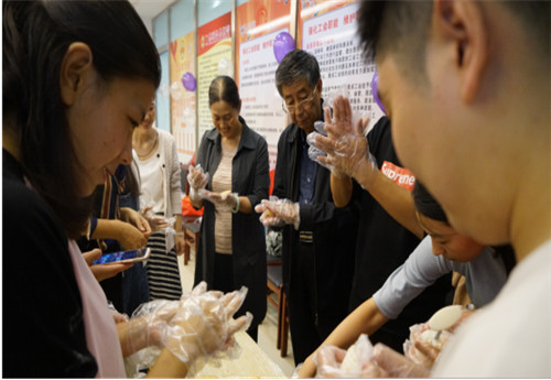 行政一工会小组举办的“浓情三节 香飘城轨”DIY烘焙活动在艺术楼工会活动室进行,活动既有创意,又充分带动了老师们参与的积极性。出席活动的校领导也亲切地与老师们一起制作月饼,整个活动现场气氛热烈。