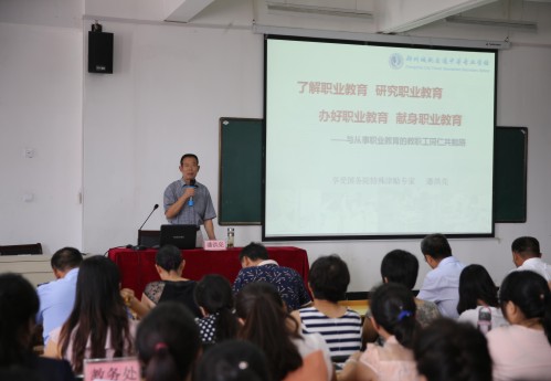 图 校长潘洪亮教授为全体教职工讲解职业教育的知识