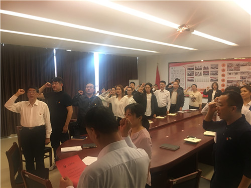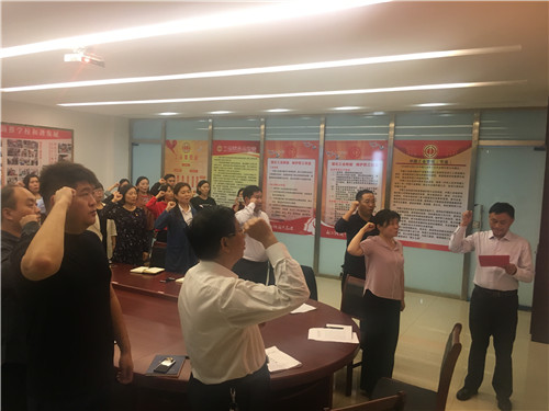 会议开始,首先由我校纪委书记、副校长侯河新同志带领各位党员干部重温入党誓词。面对鲜红的党旗,大家高举右手,重温自己对党虔诚的誓言,表达为党的事业奋斗毕生的决心,进一步增强了党员干部们的党性观念和党员意识。