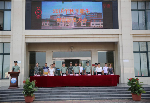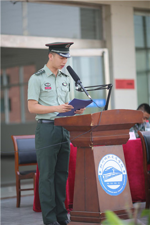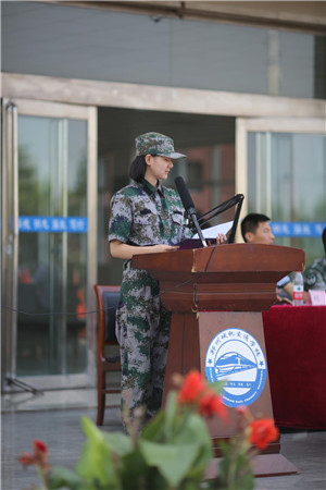 动员大会在慷慨激昂的国歌声中拉开帷幕。首先,运乘系18秋乘务二班的丁琪同学代表全体新生发言。她代表所有参加军训的学生郑重承诺,军训期间一切行动听指挥,以军人的身份严格要求自己,苦练基本功、磨练意志,发扬吃苦耐劳的精神努力完成各项军训任务。接下来由运管一系的辅导员张欣欣老师发言,她代表所有辅导员老师表示,将与同学们并肩作战、荣辱与共,并对所有新生提出三点希望:一是希望同学们都能做一个自信的人,只要同学们肯努力,成功将离他们不远;二是希望同学们能做一个勇于拼搏的人,因为成功只属于那些勇于竞争并能持之以恒的人;三是希望同学们都能做一个有责任感的人,时刻记着肩上的责任。最后由机电系教官刘善玉发言,他代表所有教官做出承诺,认真履行教官职责,以身作则,给同学们做出榜样,通过训练,让大家掌握一定的军事知识和技能,养成雷厉风行的作风和高尚的道德情操。