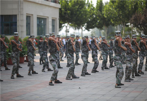 接下来是教官队列动作展示及助教团军体拳表演,他们响亮的口号、整齐划一的动作,博得大家的阵阵掌声。至此本次动员大会圆满结束。