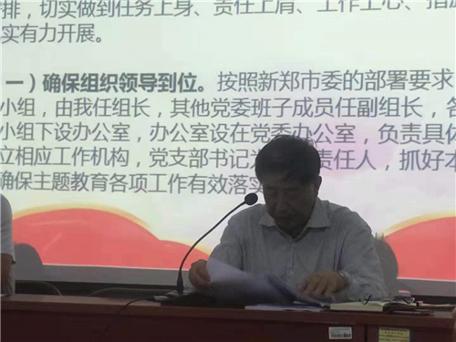 接着,新郑市巡回指导组组长、中共党史研究室主任李炎武发表讲话,他指出在全党上下开展“不忘初心、牢记使命”主题教育,是锤炼党性、修炼共产党人“心学”的过程。中华民族伟大复兴,绝不是轻轻松松、敲锣打鼓就能实现的,全党必须付出更为艰巨、更为艰苦的努力,也要依靠每个党员踏实努力的奋斗,不断提升自己的党性修养,弄明白我们共产党人的初心和使命是什么,我们党为什么反复强调要“不忘初心、牢记使命”、如何践行“不忘初心、牢记使命”这三个问题。