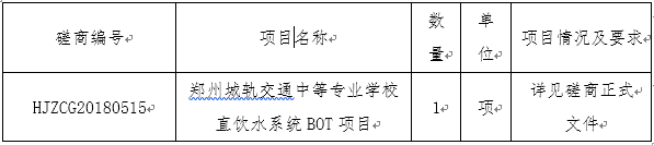 中教集团下属郑州城轨交通中等专业学校直饮水系统BOT项目磋商邀请