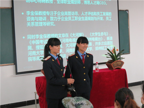 首先,李教授针对我校学生,并赠送两个“法宝”、“四个学习”,两个法宝即:目标、方向,四个学习即:学知识、学技能、学沟通、学素质,系统全面的阐述了当今就业形势和现状,并鼓励学生珍惜在校每一天,发挥个人潜能,尽早接触社会、适应社会。