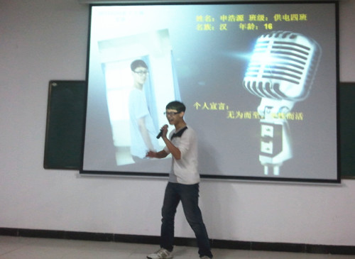 5月23日晚7点,由团委主办的“我的青春我来唱”2013校园歌手大赛复赛20进10的比赛在综合楼A(2)合堂教室举行,本次歌手大赛共有103人报名,通过3场海选,两场初赛的选拔,共有20名选手脱颖进入复赛。本次复赛共举行一场,分为直接晋级赛和待定复活赛两轮,评委由4位老师和30位大众评审组成。
