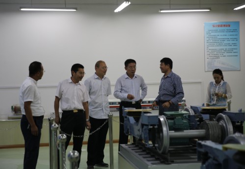在于存涛理事长的引领下,各位领导经过国旗广场来到我校2号实训楼4楼,依次查看了轨道交通专业车辆检测实训室、信号道岔实训室、ATC运营管理(牵引供电)实训室、电工技术实验室、电子技术实验室等5个实训实验室。检查了2号实训楼之后,各位领导又兴致勃勃地走向轨道交通专业实训中心,依次查看了仿真地铁站台、车辆机械备品、车辆蓄电池实训操作等学生实训工位。检查过程中,于存涛理事长对我校的办学基本情况及发展规划、学生管理特色、师资队伍建设、专业建设向教育局各位领导做了介绍。