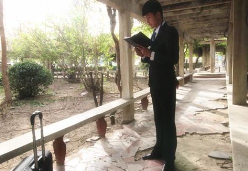 参赛学生在比赛前正在认真练习表演台词
