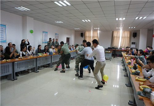 学生管理工会小组下设五个分组,五个小组根据各自工作特点和内容,分别举行了丰富多彩的茶话会活动。他们借助茶话会,组织辅导员及教官进行了学生管理经验的相互学习与交流。在茶话会上,多才多艺的教官和辅导员还为大家带来了精彩绝伦的表演,有歌曲、舞蹈、相声、游戏等节目形式,其中教官自编自演的三句半《我们学校》,节目贴近生活,富有活力,能引起观众共鸣,最终摘得“最佳创意”节目桂冠!