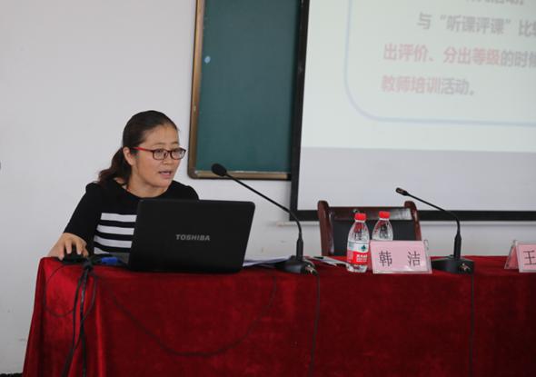 韩洁做“走向专业的听评课”及“让有效教研活动为教师发展助力”的讲座
