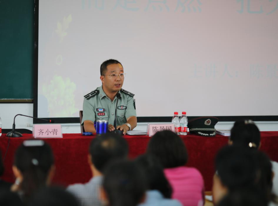 陈景国做“中职生的心理特点和有效的管理方法”的讲座
