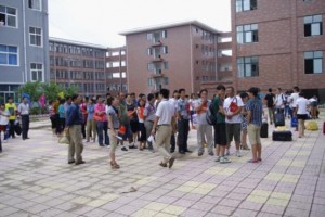 中华楼前的广场上,站满了等待办理手续的学生和家长