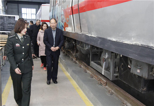 来访嘉宾参观我校城市轨道交通车辆检修实训室