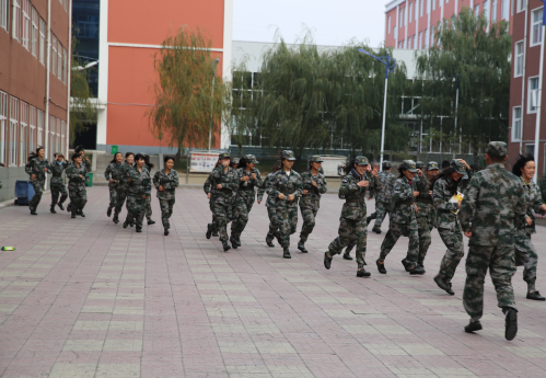 15时45分,“火情”突现,一阵阵急促的警报声随即响彻校园,各位教官迅速到达指定位置,引导教室内学生快速疏散。各班学生带上口罩或用湿毛巾捂鼻,有序地按指定路线“逃生”,尽快撤离到学校操场的安全地带,随即各班级辅导员清点上报人数。演练共用时10分钟,全校学生全部安全疏散完毕,整个活动迅速、有序。